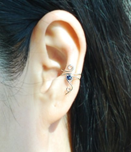 -. Title : 0.5 / 24gauge Copper wire Ear Cuff with crystal glass Beads, Ear Jacket, Ear Wrap, cartilage earring,Non pierced Ear Cuff / Please select an option.