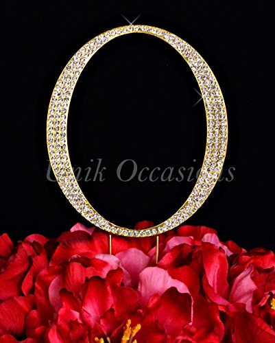 Unik Occasions Collection Crystal Rhinestone Wedding Cake Topper, Large, Letter O, Gold