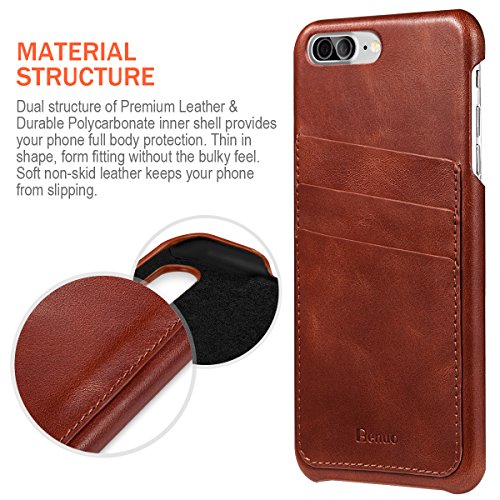 -. Binding : Wireless Phone Accessory -. Brand : Benuo -. Feature : [Top Notch Material] [Tailored for iPhone 7 Plus] Made of high quality Genuine Leather & durable Microfiber, handcrafted and vintage classic style, brings you a distinctly unique attitude. Classy outer leather, soft Microfiber inner lining with a suede-like finish, scratch resistant & shock resistant. / [Features 3 Card Holders] This case completes with 3 convenient rear pockets to store your ID, cards, and cash. Stuffs fit snugly in the Slots. A practical & exquisite component for easy carrying. / [Ultra Slim & Lightweight] Low profile design, unlike other complicated cases, this card case is incredibly super-thin without adding too much bulk to your device, slim enough to fit in the palm of your hand, fits your iPhone 7 like a glove. Thus, Works great with Apple Pay, NFC. / [Precision Crafted] [Nice Reception] Precise cut and design, easy access to all Buttons, Ports, Speakers & Camera. Quick and simple snap-on shell installation. Works great with Screen Protector, Flash Photography & Apple Pay, NFC, does not affect reception. / [1 Year Warranty] You will satisfied with this buying experience if you want a 100% Satisfaction Guarantee, including 60-day Money Back Guarantee, 12 months Warranty on manufacturing defects & excessive wear. Tailored for Regular Apple iPhone 7 Plus (Large Version) Released in 2016. -. Label : Benuo -. Manufacturer : Benuo -. PackageQuantity : 1 -. ProductGroup : Wireless -. ProductTypeName : WIRELESS_ACCESSORY -. Publisher : Benuo -. Studio : Benuo -. Title : iPhone 7 Plus Case, Benuo [Card Slot Vintage Series] [Genuine Leather] Soft Leather Case [2 Card Slots], Ultra Slim, Leather Case Back Cover [Business Style] for Large Apple iPhone 7 5.5 inch