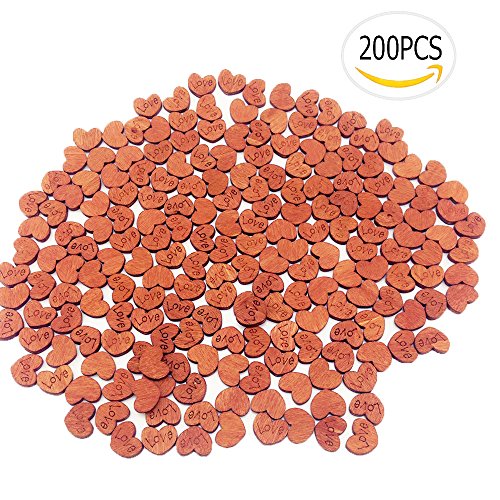 Oruuum 200Pcs Rustic Wooden Love Heart Shape Wedding Table Scatter Decoration Crafts DIY,1215mm(Dark Brown)-No Hole