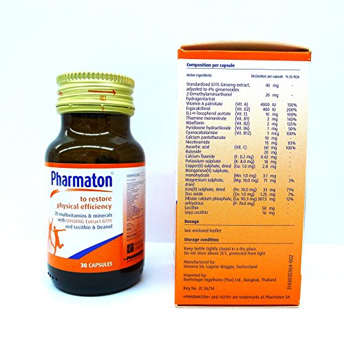 Pharmaton Capsules Stress Fatigue Tiredness Exhaustion Ginseng G115 Optimal Physical and Mental Performance 30 Capsules Bottle Ideal Size for...