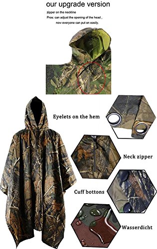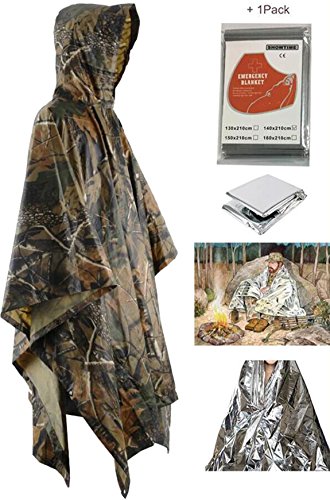 HOWON Military Multifunction Realtree Camouflage Waterproof Rain Poncho For Adults(Gift Emergency Blanket)