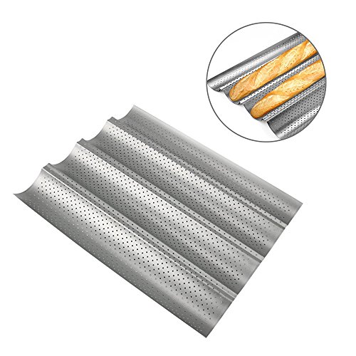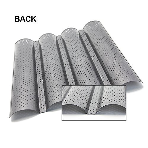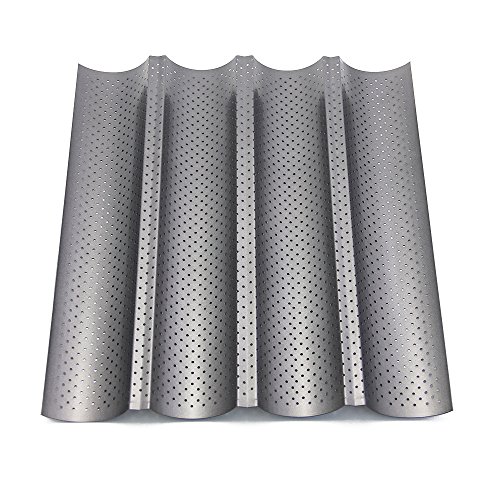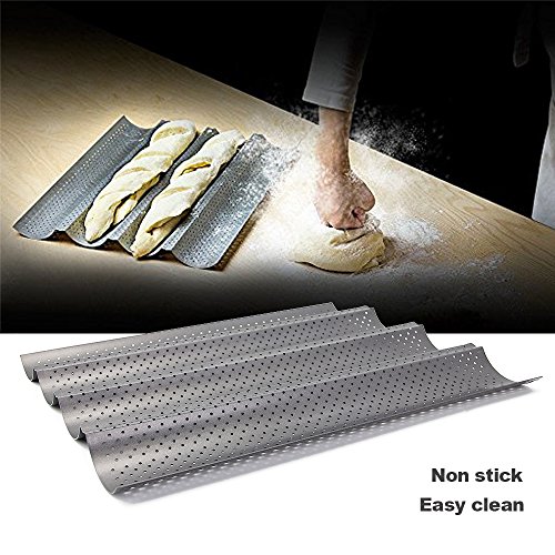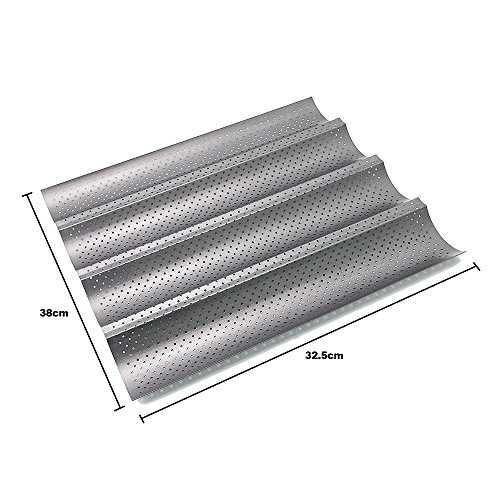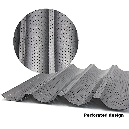 - French Bread Pan: 4 wave slots ,helpful make decent baguettes more easily ,keep in good shape.During the baking process, the integrated holes guarantee an ideal distribution of heat.
