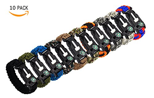 Bestsupplier 10 Pack Paracord Bracelet Kit Outdoor Survival Bracelet Camping Hiking Gear with Compass, Fire Starter, Whistle And Emergency Knife