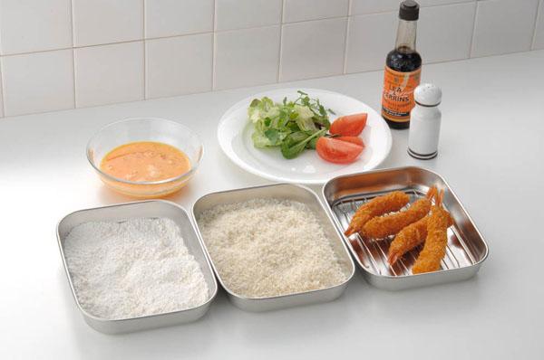| 料理の下ごしらえに便利な大きめのバットです。従来のバットより大きめなのでとんかつなどの揚げ物がスムーズに出来ます。揚げ物の衣つけや、切った具材を入れるなど料理の下準備に活躍します。バットはアミをのせれば天ぷらバットとして油切りに使えます。ふた付きなので、食品の保存にも。角型で冷蔵庫にもすっきりとおさまります。重ねてコンパクトに収納できます。 |