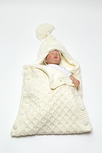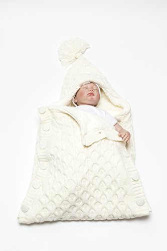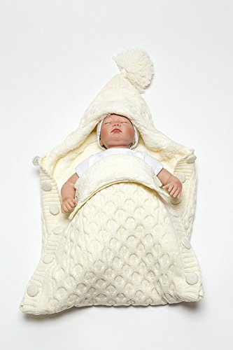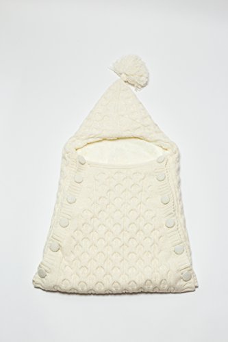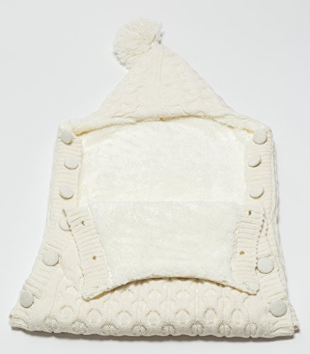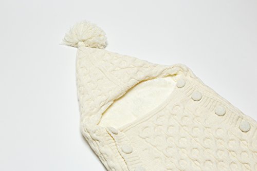 Softy Knitted Wool Blended Baby Sleep Wrap Swaddle Blanket with Button - 0-12 Months - Cream
