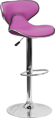 -. Title : 2 Pk. Contemporary Cozy Mid-Back Purple Vinyl Adjustable Height Bar Stool with Chrome Base
