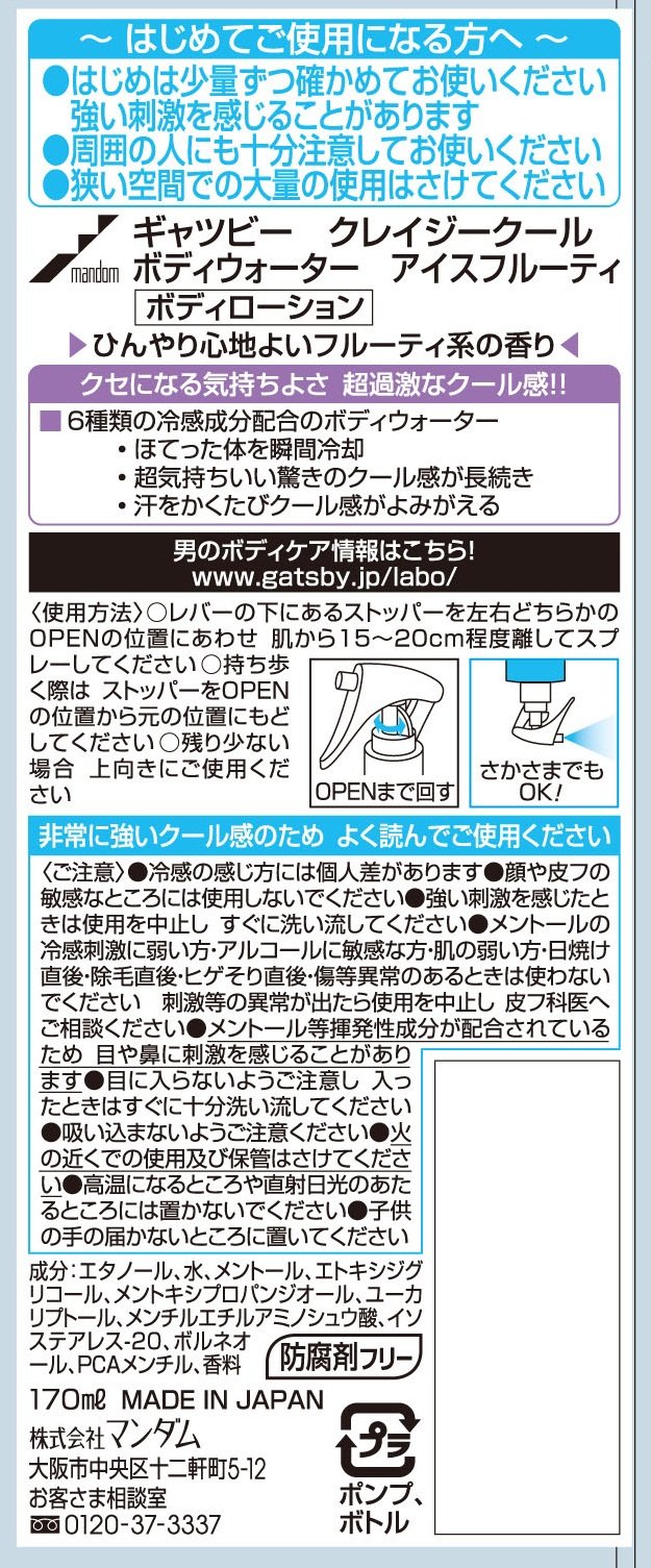 Mandom GATSBY crazy cool body water ice fruity (170mL)