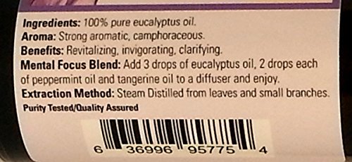 Use eucalyptus essential oil for any function. Pure quality oil plant derived from Eucalyptus globulus. Brought to you by our holistic brand- we empower individuals and communities to support local, organic, cruelty-free, and ethical practices. Ingredients: pure eucalyptus oil sourced from leaves and small branches. Strong or light diluted for kids and children. Non-plastic container. Benefits: Revitalize, invigorate, anti-aging, beauty. Essential oils dilute for health and anxiety therapy, muscle and back pain relief, arthritis, also on face, body, skin, hair, individually or blend with mixes.Feature