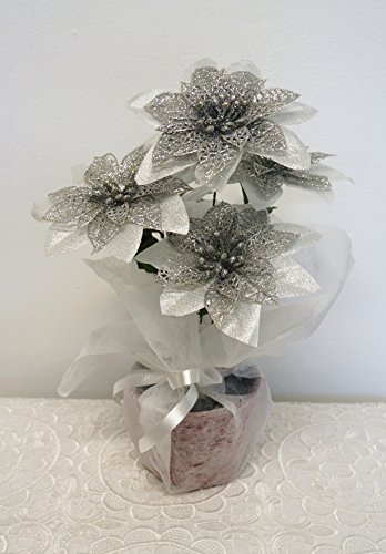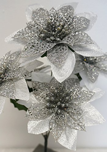 - Title : Sweet Home Deco 13'' Glitter Poinsettia Artificial Flower Bush Dual-use Christmas Decoration (5 Flower Heads) (Silver)