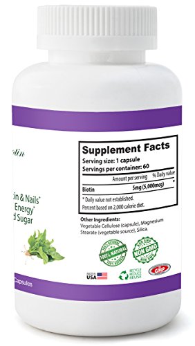 PURE VEGAN BIOTIN 5000 mcg benefits your cardiovascular health, lowers cholesterol, controls blood sugar, prevents cognitive decline, repairs tissues and muscles. Also, the gelatin free biotin keeps your stomach healthy