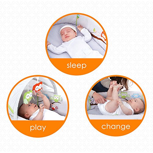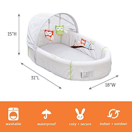 LulyBoo Portable Owl Theme Baby Lounge with Activity Bar and Rattle Toys