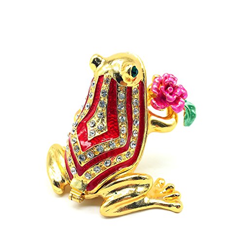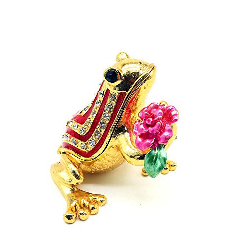 QIFU Hand Painted Enameled Frog Decorative Hinged Jewelry Trinket Box Unique Gift For Home Decor