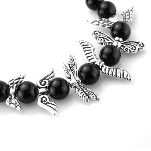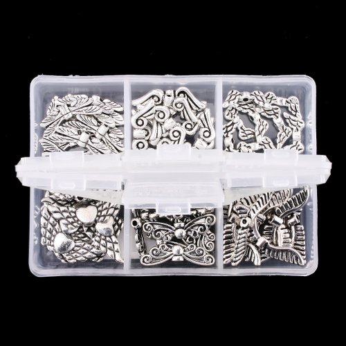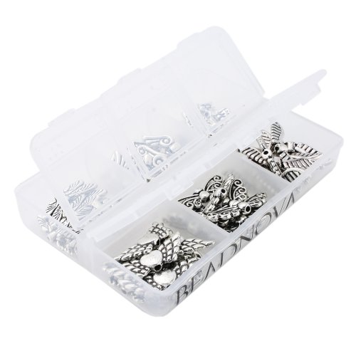 BEADNOVA Vintage Tibetan Silver Plated Angel Wing Charm Beads Spacer Jewelry Findings Parts for Jewelry Making With Container Box (60pcs)