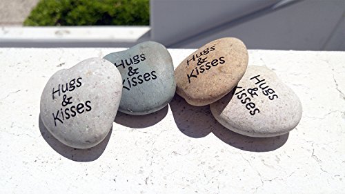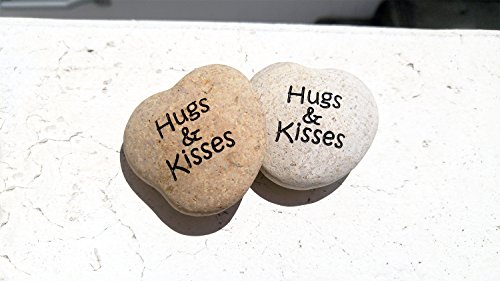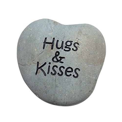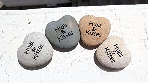 Hugs & Kisses Engraved Stone Heart Shaped Inspirational Sandblast Stone, Perfect Gorgeous Unique Gift Ideas, Natural Beach Pebble Rock