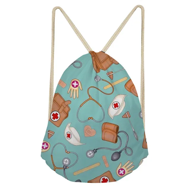Type3:Cute Cartoon Nurse Bear Printied Men String Shoulder Bags