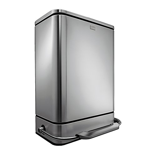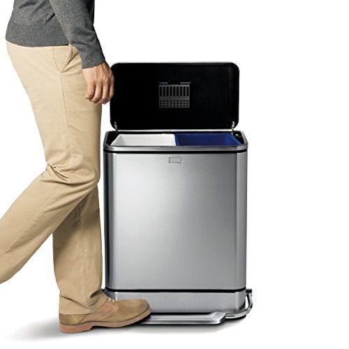 - Feature : Strong steel pedal: Our strong steel pedal is engineered to last over 150,000 steps - that's more than 20 steps a day for 20 years / Silent close lid: Our patented lid shox technology controls the motion of the lid for a slow, silent close / Includes 2 buckets to sort trash and recyclables all in one integrated can / Fingerprint-proof: Fingerprint-proof finish resists smudges to keep stainless steel shiny / Integrated odorsorb filter: Natural charcoal filter is integrated into the lid to absorb odors / Dual buckets for trash and recycling / Clean aesthetic of modern commercial-grade kitchens / Large reinforced steel bar pedal / Lid shox technology for a smooth, silent close / Integrated odorsorb filter holder (2 pack of filters included) / Internal hinge allows for placement right up against the wall