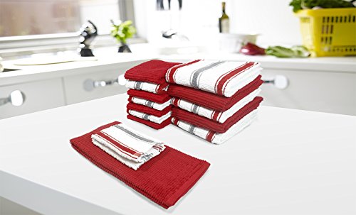 -. Title : Popular Bath 859973 14 Piece Chef Stripe kitchen/Dish cloth Set, Red/Light grey