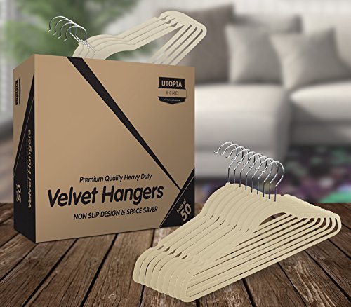 Premium Velvet Hangers (Pack of 50) Heavy Duty - Non Slip - Velvet Suit Hangers - Ivory - by Utopia Home