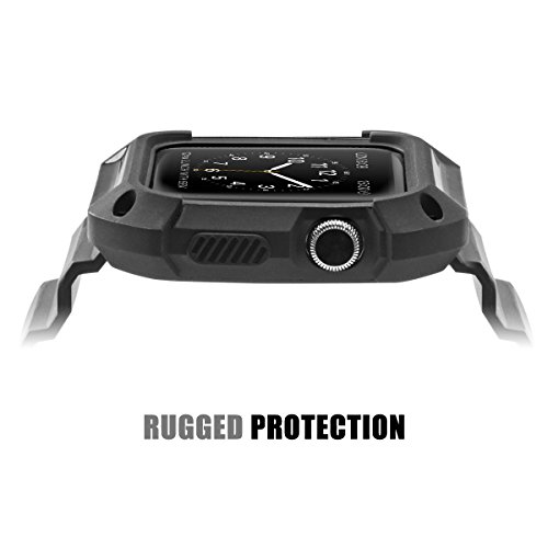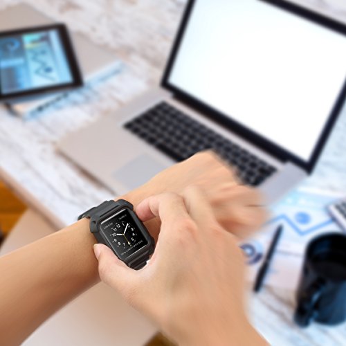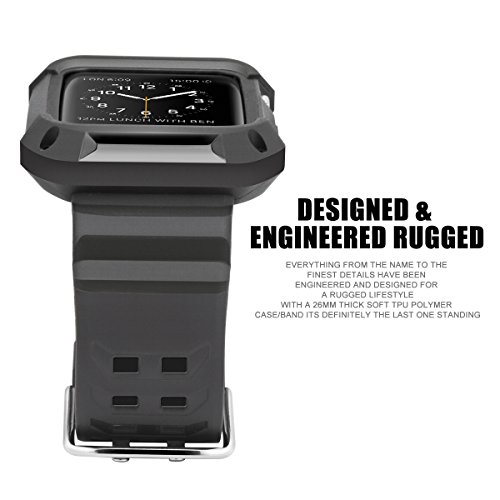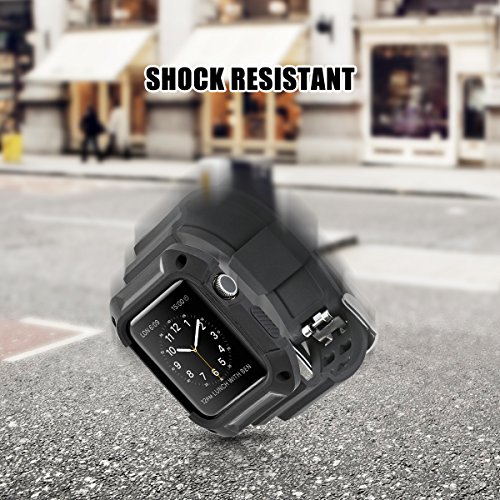 Apple Watch Band 42mm, Series 2 Sport Band and Case for iWatch Series 2, ZOEKO Rugged Protective Resilient Shock Case with Strap Bands for Apple iWatch Edition 2015 2016 (42mm Black)