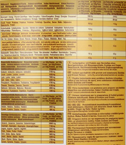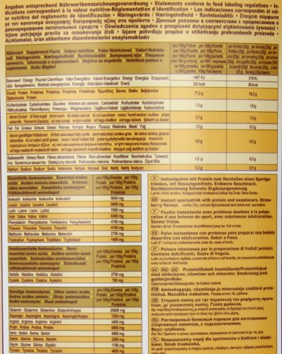 -. Feature : • hoher BCAA Gehalt / • fördert Muskelzuwachs und Kraftaufbau / • starke anti-katabole Wirkung / • verbesserte Regeneration / • schnelle Sättigungswirkung