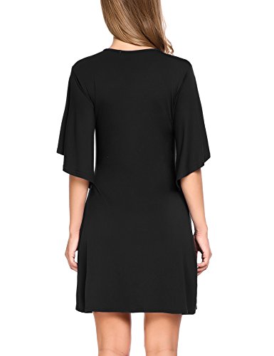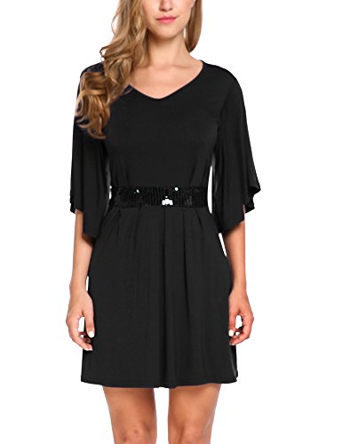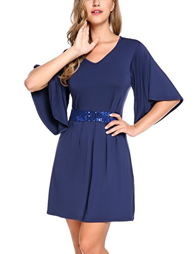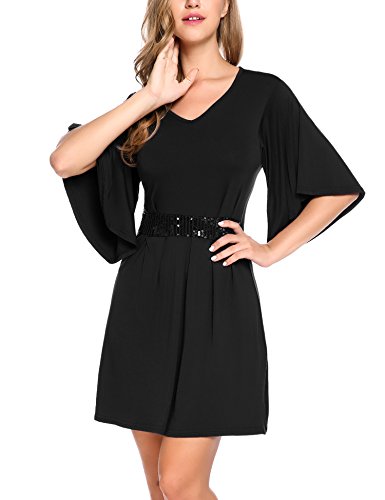 V-neck dress, half bell sleeve dress, solid color dress.Sexy V-neck and loose fit dress . Also there is a belt in the waist ,it will be good to show your figure .