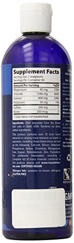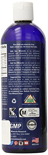 Body-Balanced, Full Spectrum, Liquid Ionic Mineral & Trace Mineral Nutritional Supplement. A naturally concentrated sea water product from Utah's inland sea.A dietary supplement. A natural, balanced salt seasoning which contains all of the naturally occurring minerals and trace minerals. To be used on or in any food, instead of refined table salt. Great for spraying on popcorn. A teaspoon added to 8-12 ounces of your favorite drink instantly turns it into a sports electrolyte replacement drink.Feature