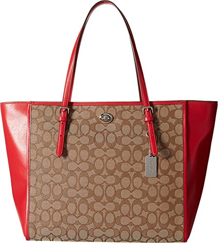 COACH Women's Signature Turnlock Tote SV/Khaki/True Red Tote
