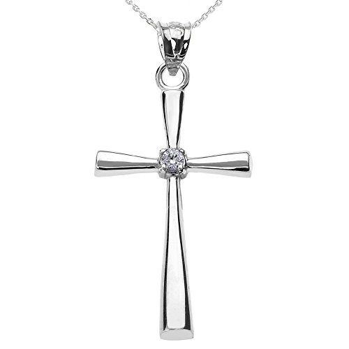 -. Title : Solitaire Diamond Cross Pendant Necklace in 925 Sterling Silver