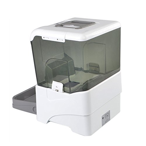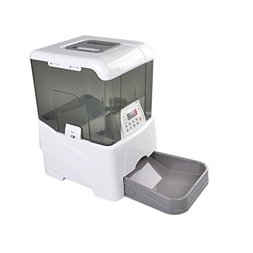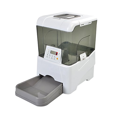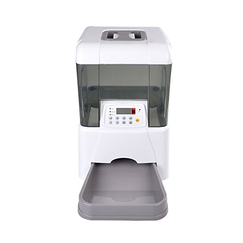 -. Feature : High-quality Material, Large LCD Control Panel, durable for using, convenient to set programming; / Supporting feeding 1-5 meals per day, selecting 1-12 portions for each meal(each portion about 25g food). / Transparent hopper with large capacity of 10.6L dry food, easy monitoring food amount and refilling when needed. / Built-in Voice Recorder, Dual power supply system(battery mode and rechargeable mode); / Support remote controlling, feeding your pet with one-pressing key, easy the pet feeding way!