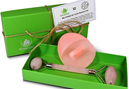 -. Title : Best Anti-Aging Rose Quartz Roller Massager with Pink Silicone Cleansing Brush for Face and Neck Skin Rejuvenation and Body Relaxation, 100% Real Natural Quartz, Jade Roller 2.0 in Green Gift Box