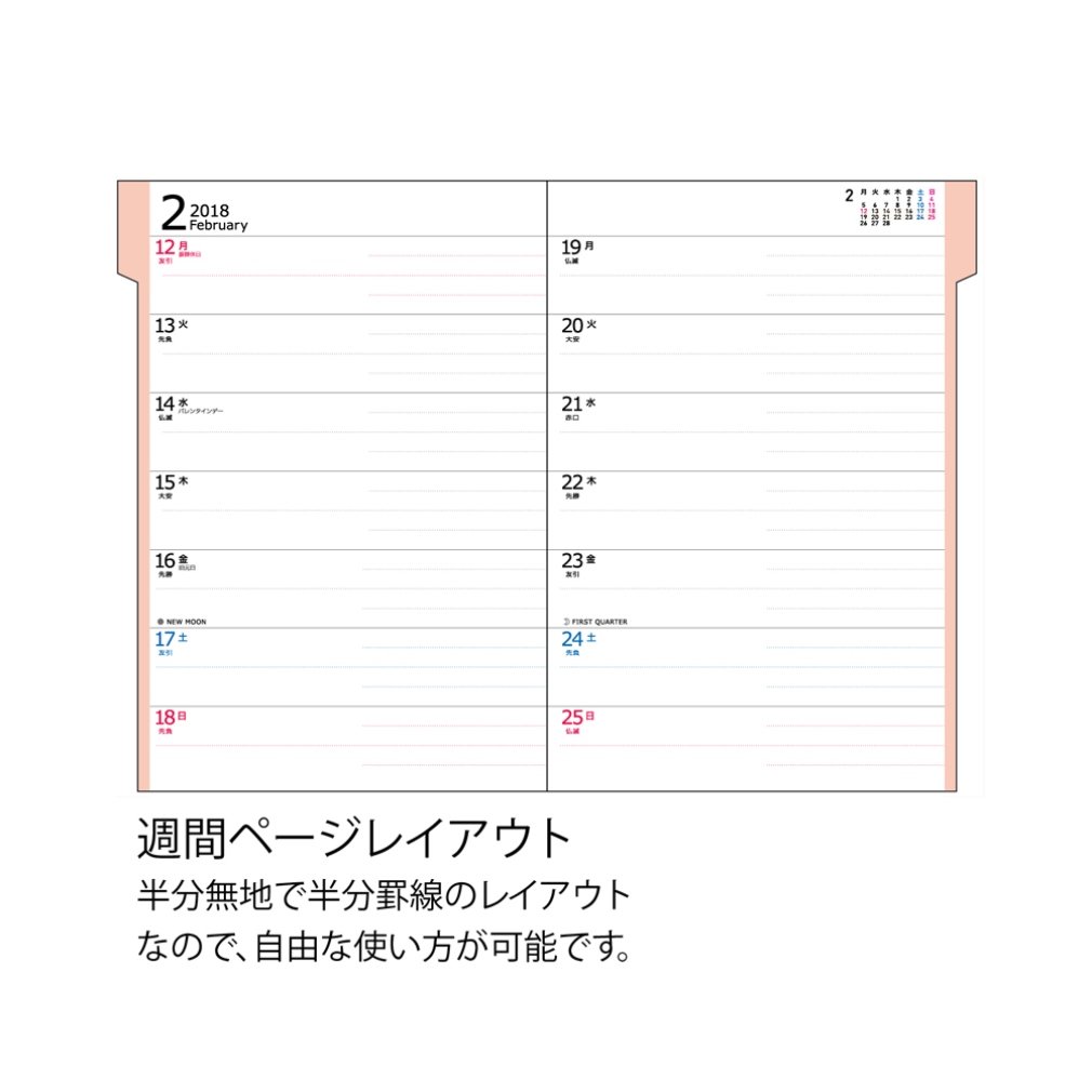 · Weekly page layout is a half plain and half ruled line layout, so you can use it freely