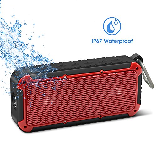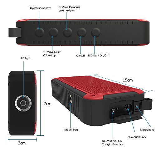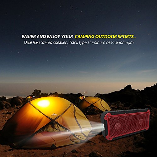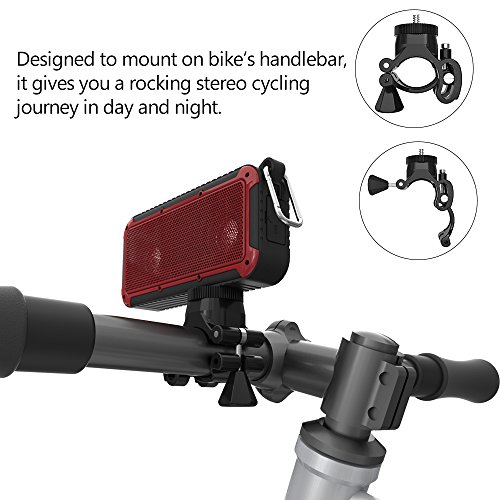 Bluetooth Bicycle Speaker New Bee 10W Wireless Waterproof Outdoor Speaker with Led Flashlight Metal Hook Loop and Bicycle Mount for Sports Travel Bicycle Cycling -Red