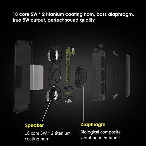 IP67 WATERPROOF: IP67 designed especially for outdoor speaker and shower speaker; Large area of sealed silicone cover design, shockproof and dust-proof, ensures this speaker can be used under harsh environment, 360 degree anti-bump design, using high-strength silicone surface of the product can withstand daily drop or bump the impact.
