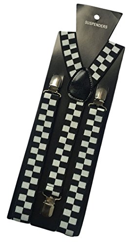 (MENDENG)/Accessories/Suspenders Cummerbunds/DIRECT FROM USA/MENDENG Men's White Black Plaid Checks Suspenders Y Back Adjustable Strap Braces