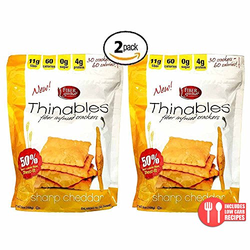 -. Feature : Comes with TWO bags of 6 oz. Cheddar Thinables / Six 6 ounce packs / Tangy cheese flavor, just like cheese nips, but with half the calories / Just 60 calories per ounce compared to 140 in standard cheese snacks / 11 gram fiber per 1 ounce serving; 44% of daily value