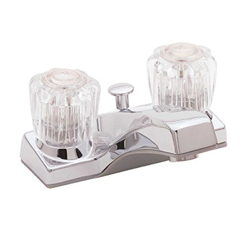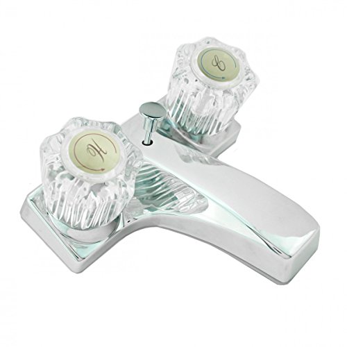 -. Feature : Chrome Bathroom Faucet, 4" Centerset Two Handle / Chrome Plated over Durable Zinc / Has ceramic washerless 1/4 turn valves? / Easy Installation, Traditional Design / Included Pop Up Drain ANSI Compliant