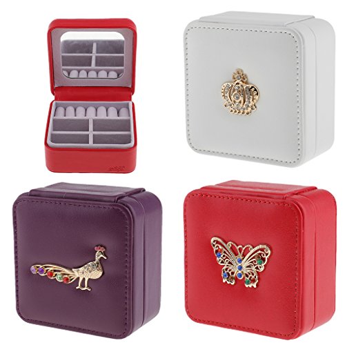 -. Feature : Material: PU Leather, Velvet / Size(L x W x H): Approx. 10 x 10 x 5cm/3.9 x 3.9 x 2inch / Portable Small Travel Jewellery Case Storage Box Organiser. / Made from PU leather, with crystal crown, peacock or butterfly, including mirror and soft compartments. / Suitable for jewellery earrings, rings, necklaces, bracelets, charms, watch storage.