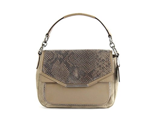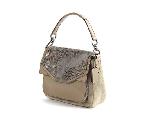 Coach Tylor Suede Exotic Python Leather Flap Handbag F33396 Bronze