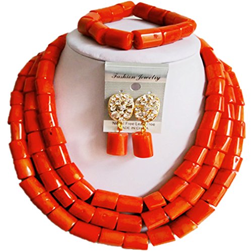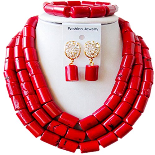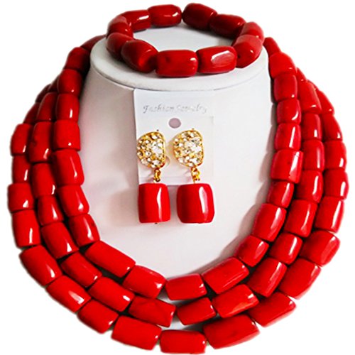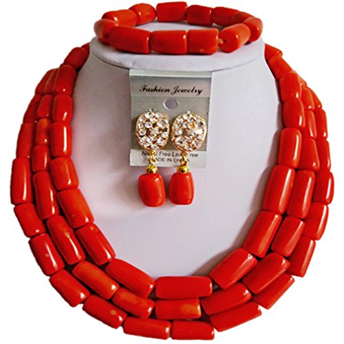 -. Title : laanc Womens Red Coral Ball Jewellery Set African Beads Bride Jewelry Set Wedding Beads Jewelry Sets
