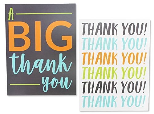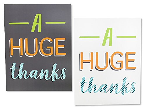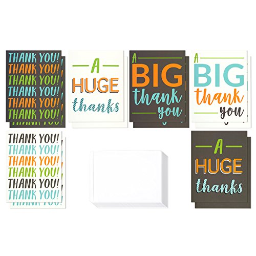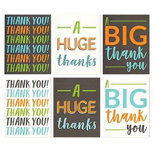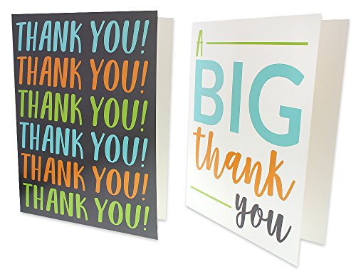 12 Pack Jumbo Thank You Greeting Cards, 6 Assorted Multicolor Designs, Bulk Box Set Variety Assortment, Envelopes Included, 8.5 x 11 Inches