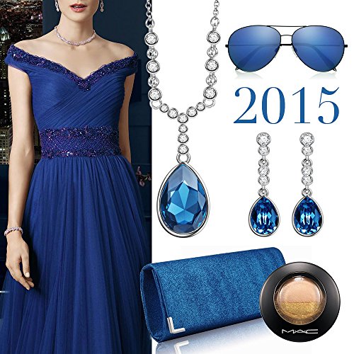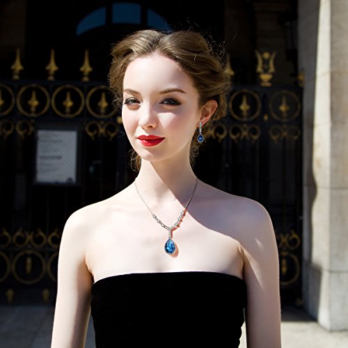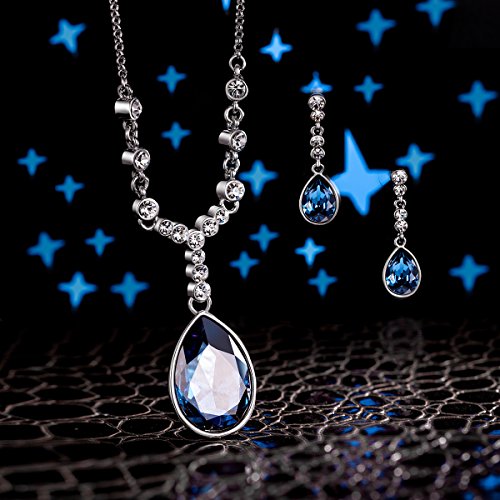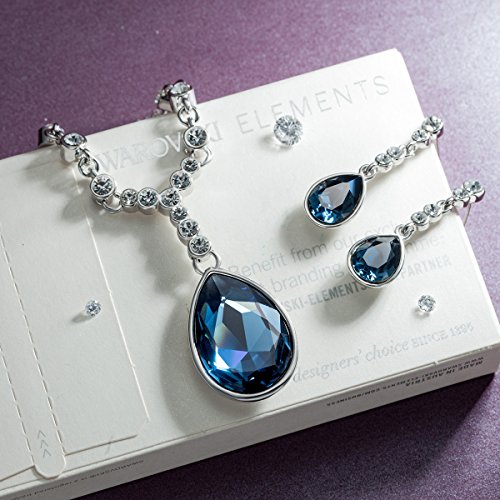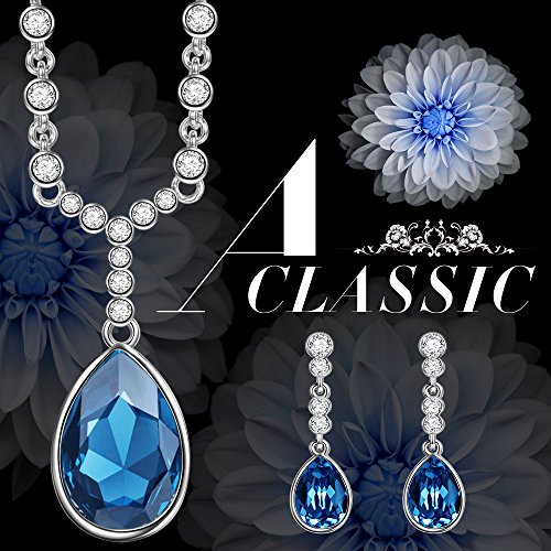 -. Title : QIANSE White Gold Plated Jewelry set made with Blue SWAROVSKI ELEMENTS