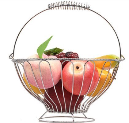 Linwell Fruit Bowl Fruit Basket Metal Standing With Handle