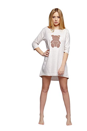 -. Binding : Textilien -. Brand : Sensis -. Department : Damen -. Feature : Schickes und niedliches Baumwoll-Negligee / Nachthemd der Marke SENSIS direkt vom EU-Hersteller. / Hochwertiges Markenprodukt aus 100% Baumwolle. / Charmant verziert mit wunderschönem Teddybär-Motiv mit Schleifchen und feinen Absteppungen am elegant gerundeten Saum, Ärmeln und Halsausschnitt. / Mit bequemen 3/4-Ärmeln und extravagantem, weitem Halsausschnitt. / Sehr elegant, weich und angenehm zu tragen. Ideale Wahl für Frauen, die Komfort und Eleganz zu schätzen wissen. -. ProductGroup : Apparel -. ProductTypeName : SLEEPWEAR -. Title : SENSIS schickes Baumwoll-Negligee Nachthemd Sleepshirt mit niedlichem Teddybär-Motiv und 3/4-Ärmeln