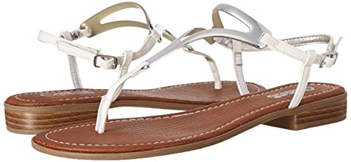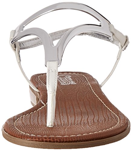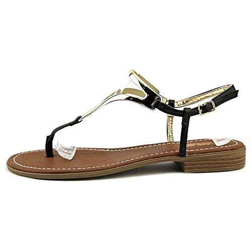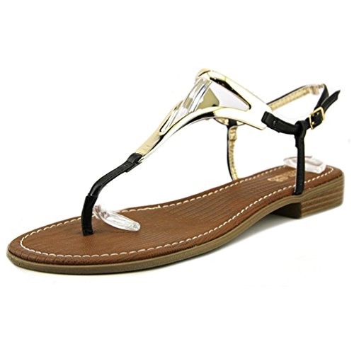 Product DescriptionT-strap flat sandal with faux metallic detail0