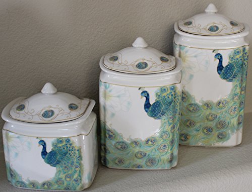 222 Fifth Lakshmi Set of Three Different Size Beautiful Canisters with Lids