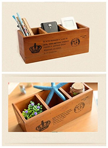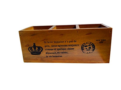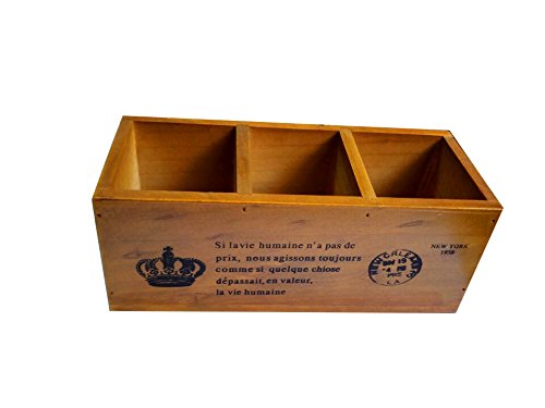 iBuy365 3 Compartment Brown Vintage Wood Desktop Office Supplies Storage Organizer/Pen Holder/Desk Organizer/TV Remote control Holder