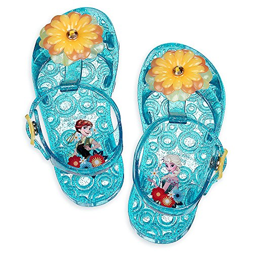 Anna and Elsa screen art embedded in gel footbed Glitter-injected jelly Gel flower at toe with faceted jewel accent Adjustable strap at ankle with yellow buckle Textured non-slip soles All man-made materials Imported New with tagsFeature