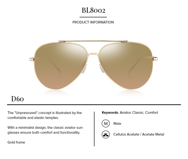 Drawing upon the classic styles, these BOLON sunglasses are inspired by the traditional PILOT design and aims to create a new Pilot style with a colorful BROWN mirrored lens that applies fashionable GOLD shape lines and a variety of materials. The HD POLARIZED lenses offer an exceptional comfort all day long. Comes with a free premium black leather protective case & a branded cleaning cloth.