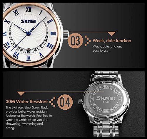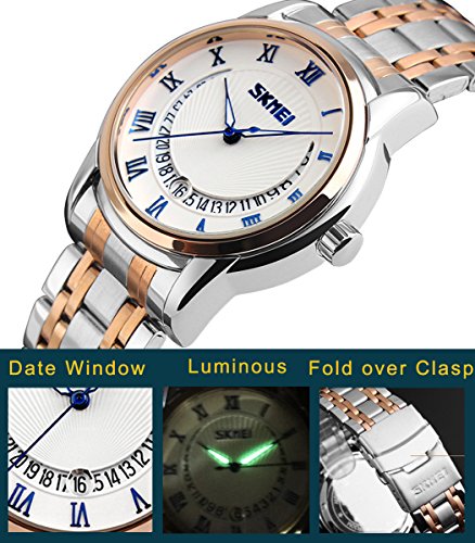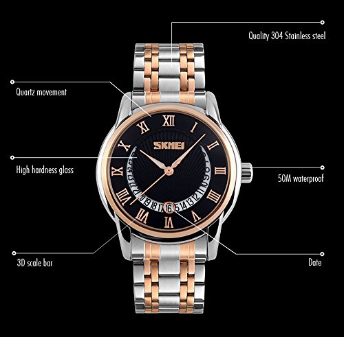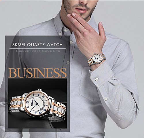 -. Title : GOHUOS Men's Business Noble Stainless Steel Calendar Date Analog Quartz Wrist Watch Rose Gold Silver
